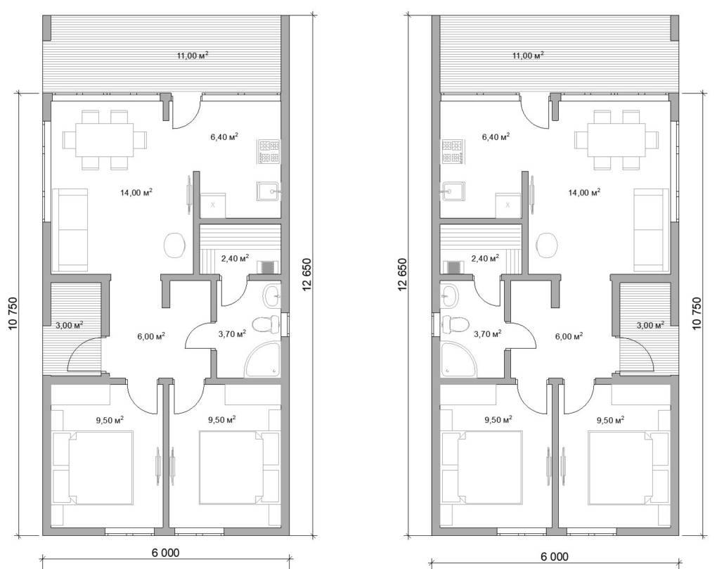 Простота форм – коробка в виде вытянутого прямоугольника, двускатная крыша, минималные свесы. Жесткий каркас из опорных клееных балок. Второй свет на всей протяженности или в одной из торцевых частей. Панорамное остекление, максимум свободного пространств.