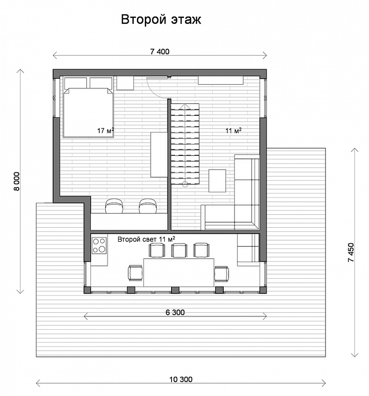 Простота форм – коробка в виде вытянутого прямоугольника, двускатная крыша, минималные свесы. Жесткий каркас из опорных клееных балок. Второй свет на всей протяженности или в одной из торцевых частей. Панорамное остекление, максимум свободного пространств.